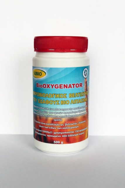 Το BioOXYGENATOR είναι βακτηριακής προέλευσης και παρέχει στις ρίζες των φυτών απαραίτητα θρεπτικά συστατικά κατά τη διάρκεια της βλάστησης με φυσικό τρόπο. Καταφέρνει με τον τρόπο του την γονιμοποιήσει του εδάφους χωρίς την προσθήκη τον κλασικών χημικών λιπασμάτων. Το προϊόν ρυθμίζει το pH του εδάφους, παρέχει στις καλλιέργειες αναγκαίες προμήθειες σε άζωτο, φώσφορο και κάλιο σε ισορροπημένες ποσότητες. Με τους ενεργούς μικροοργανισμούς το έδαφος αποσυντίθεται και η αποσύνθεση αυτή έχει ως αποτέλεσμα την αποδέσμευση θρεπτικών στοιχείων στο έδαφος άμεσα διαθέσιμων για τις ρίζες , και έτσι μεγιστοποιούν και τη χρήση τους. Αυξάνει το ποσοστό του χούμου στο έδαφος και προστατεύει τα φυτά από τους μύκητες.
